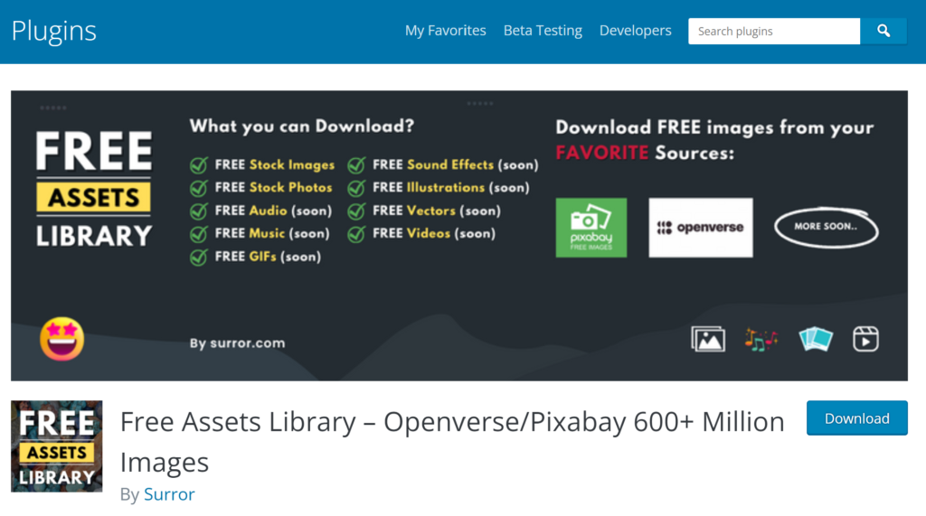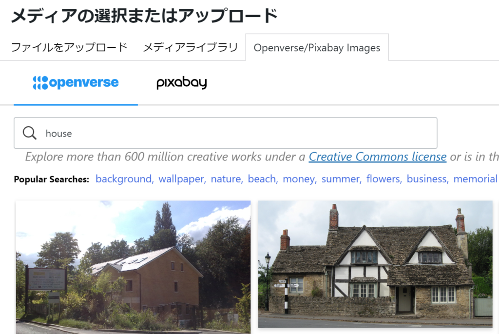WordPressでページを作成する際に、画像をそのままダウンロード&挿入ができてしまうという優れものです。画像のソースは、Openverse や Pixabay の中で、フリーで使える画像を取得しているようです。