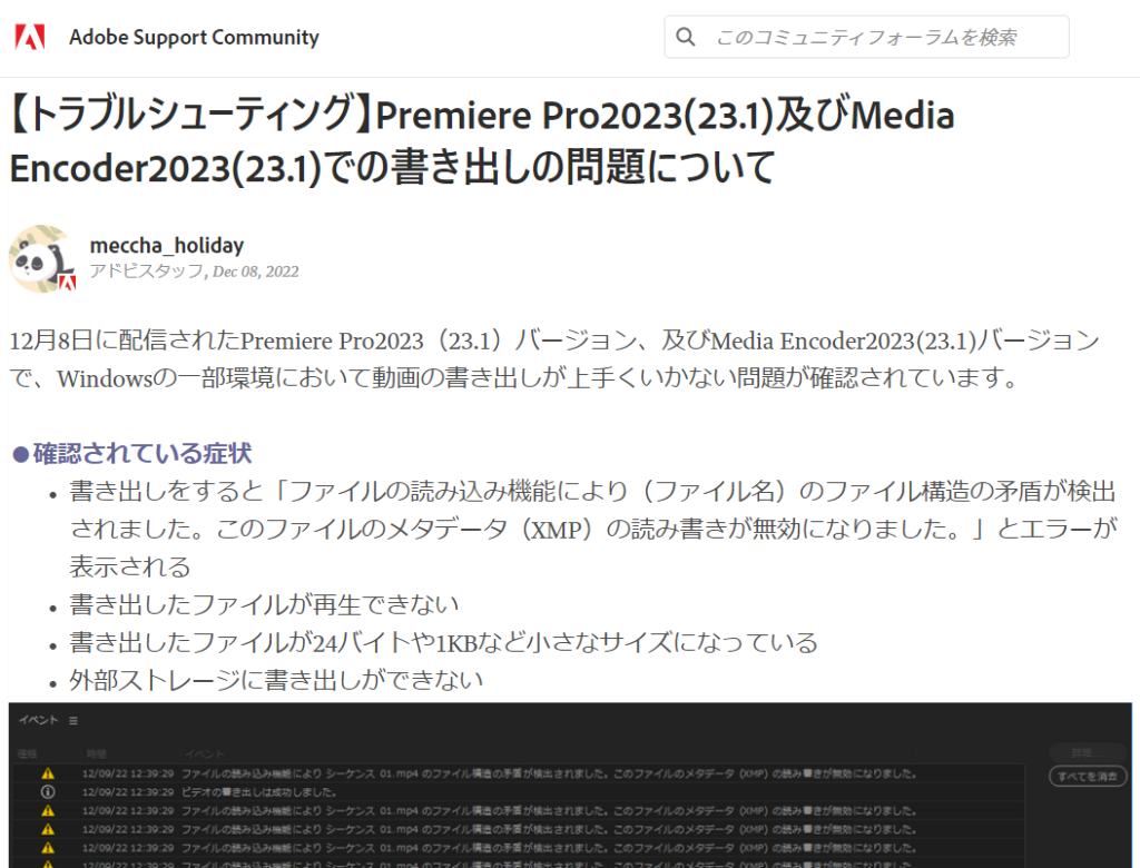 【トラブルシューティング】Premiere Pro2023(23.1)及びMedia Encoder2023(23.1)での書き出しの問題について